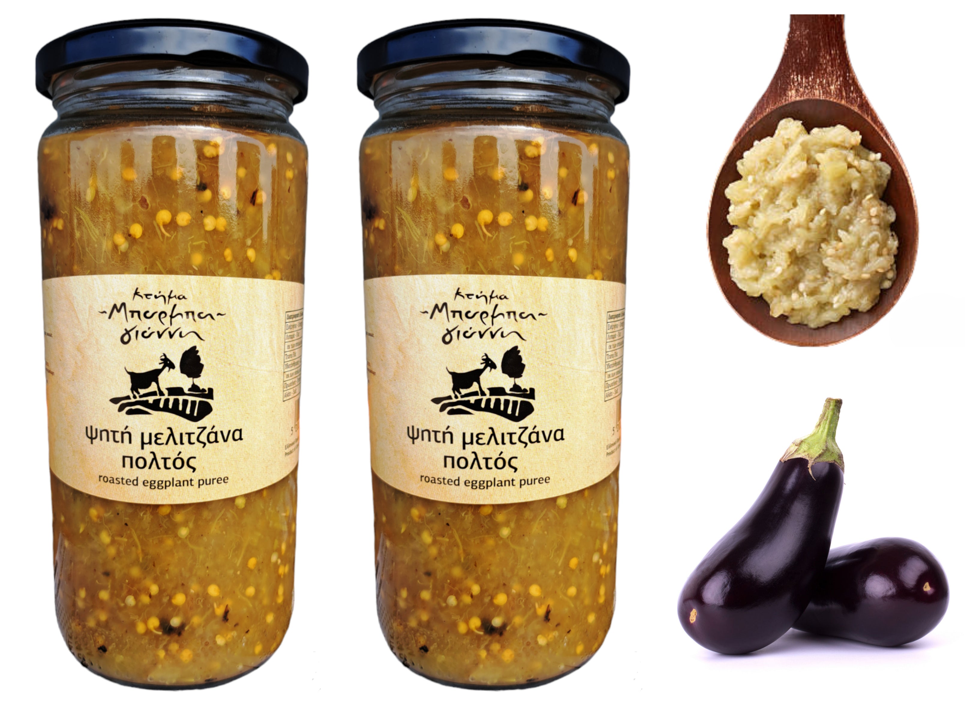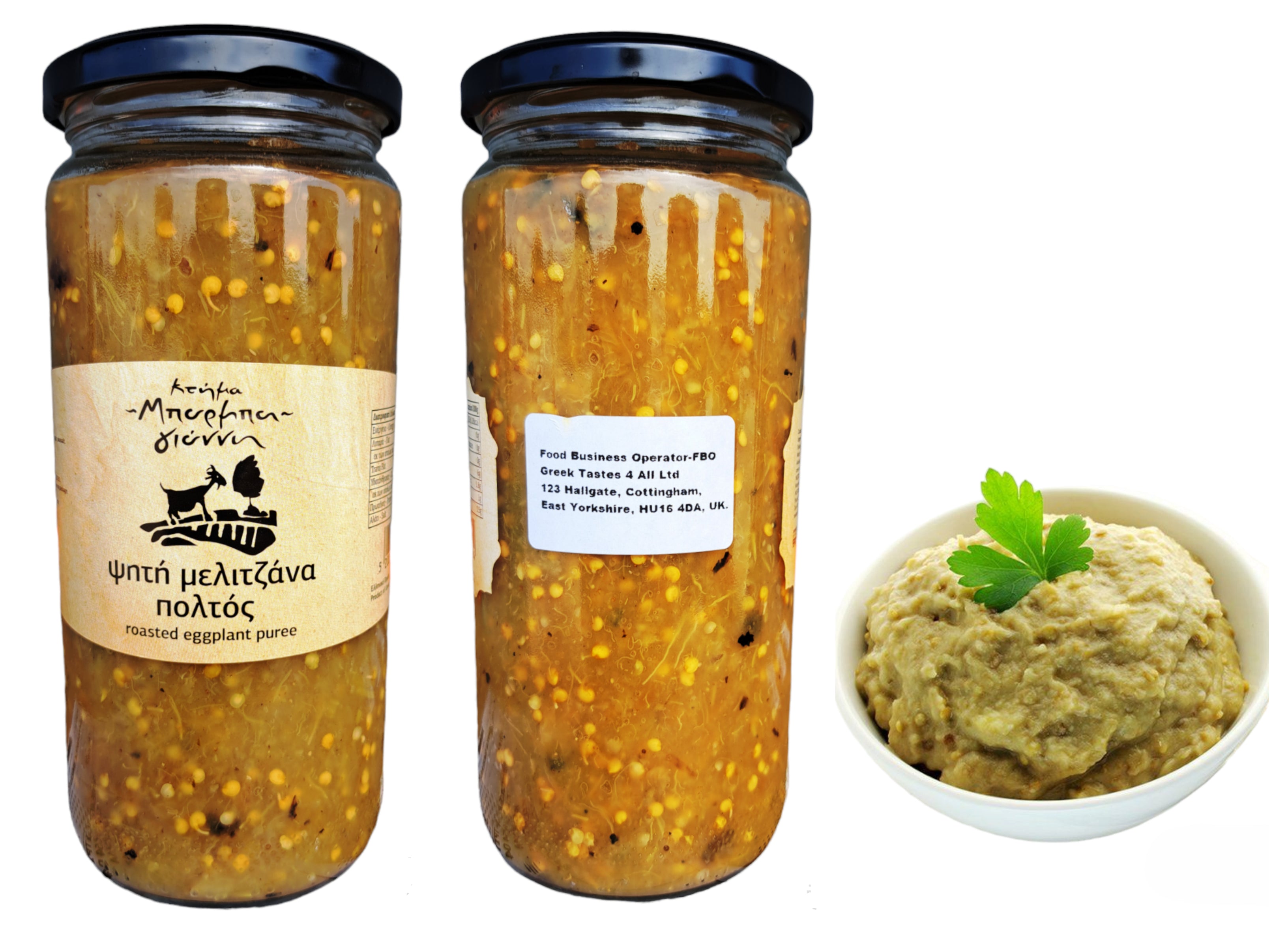 Greek Gourmet Fire Roasted Eggplant Puree, A ready-to-eat traditional appetizer. Net Weight 960gr (Pack of 2 glass jars of 480gr each):