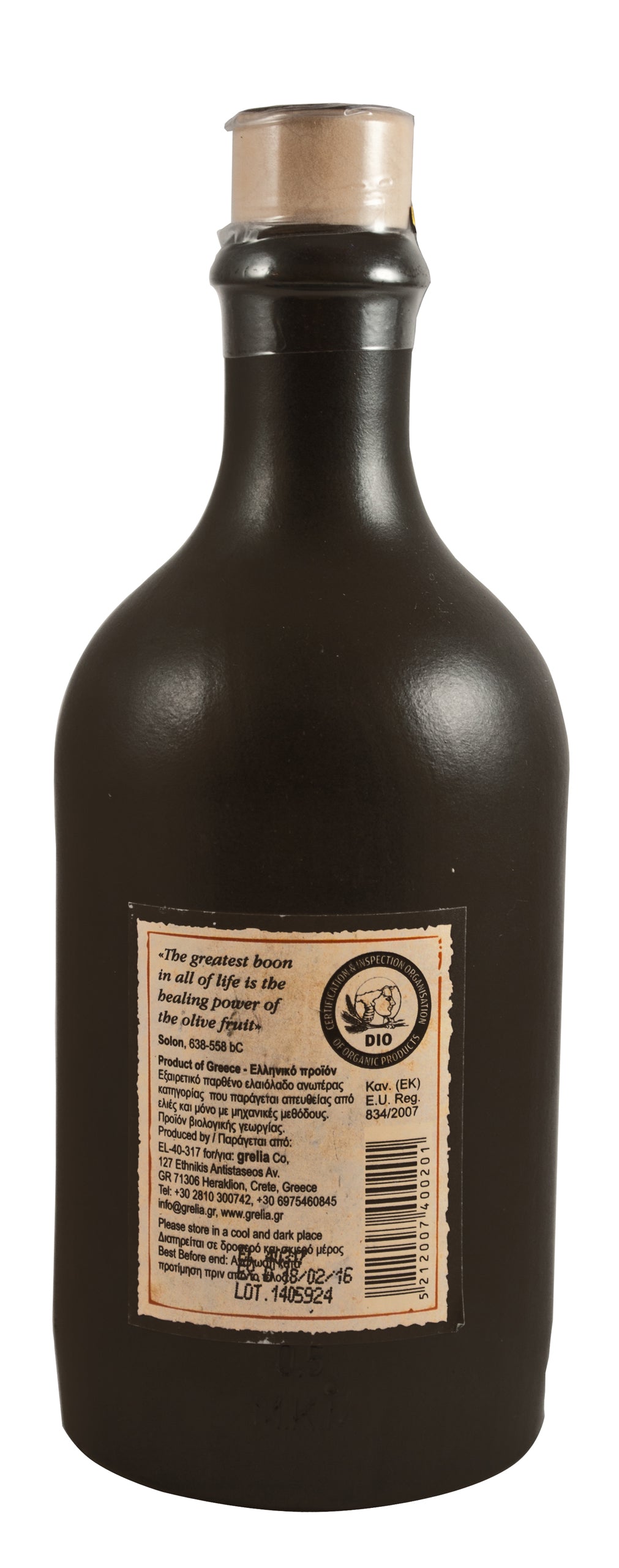 Grelia, Organic (Bio) Extra Virgin Greek Olive Oil, 500 ml, ceramic bottle: